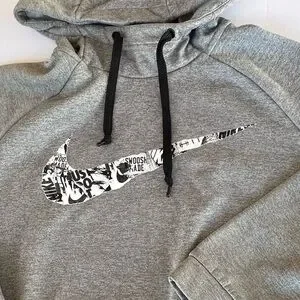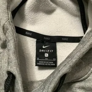 Nike Dri Fit Therma Fleece Running Turtleneck Big Swoosh Grey Pullover Hoodie. Size XL. Condition is used. Measures approximately: chest: 56 inches around (28 inches flat pit to pit), shoulder to hem line: 31 inches. Great buy!!!! Thanks for looking.