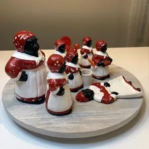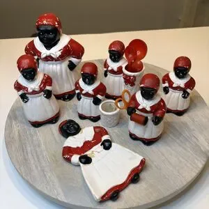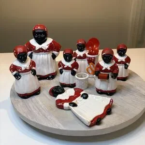 Up for sale I have this lot of Black Americana Ceramic Porcelain Chalkware Kitchen Items. Condition varies from piece-to-piece. Some are in great condition. Some have been glued together. See pics for details. Take a look at the photos and feel free to message me with any questions.