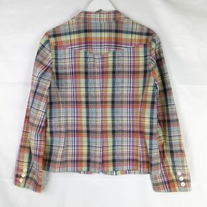 Talbots Blazer Size 10 Y2K Madras Plaid Button Up Pockets Cotton Flax Preppy