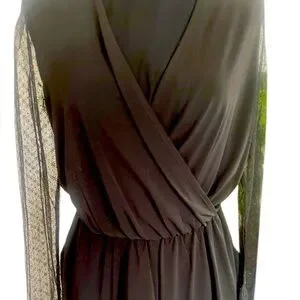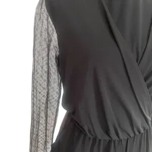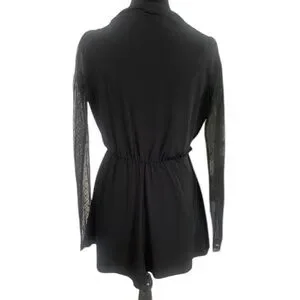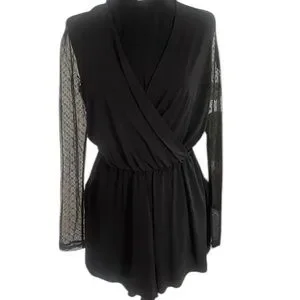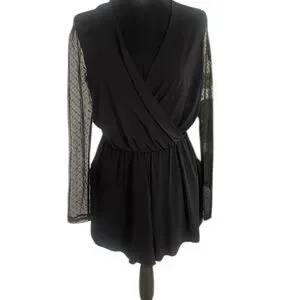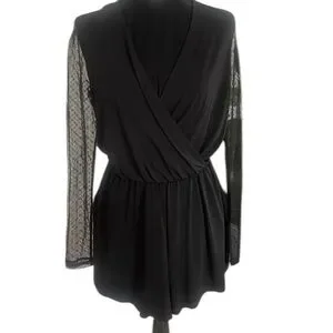 Black BCBG Lace sleeve relaxed fit romper, Jumpsuit,Draped, V neck,shorts, Small