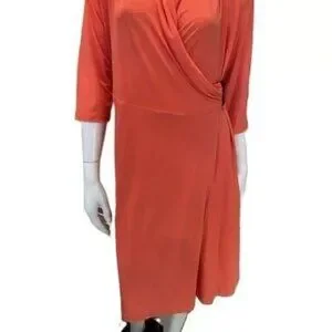 Badgley Mischka Coral Sexy V-Neck Wrap Stretch Cocktail Dress Sm, Lg, 1X, 2X