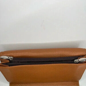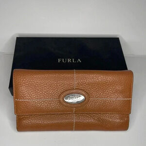 Furla Original Brown Pebbled Leather Brown Stitching BiFold Wallet Golden Logo