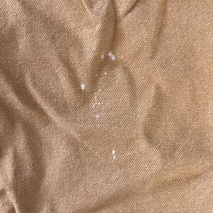 Subtle splash of bleach stain on the back each pant leg as shown in the photos
