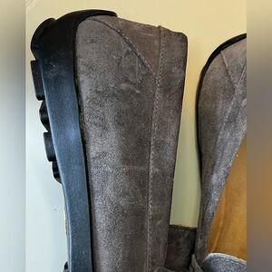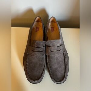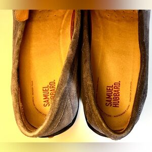 Samuel Hubbard Free Spirit driving shoes in good condition! Gray moccasin slip on style made from leather and suede with memory foam. Man-made with sustainable cork. Slight marking on inside of one loafer as seen in picture. Comfortable and classic style. Please message with any questions and thank you for looking!