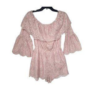 BB Dakota Kennedy Sz M Women's Pink Lace Romper jumpsuit long sleeve dusty pink