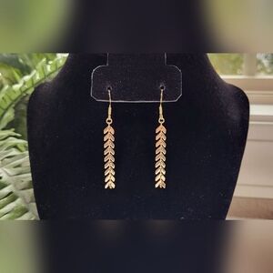 Gold Chevron Linear Drop Statement Dangle Earrings / Pierced