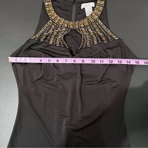 *SOLD*Cache Gold Beaded Black High Neck Top Size XS