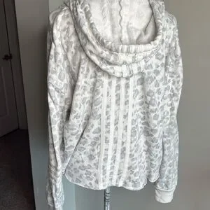 This beautiful gray and white animal print hoodie is long sleeved, V-neck withdrawal string hoodie