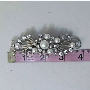 Vintage Silver Tone Rhinestone Faux Pearl Hair Clip