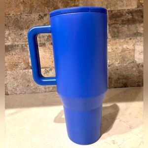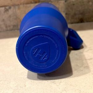 40oz. Hydrojug Traveler Cup in sapphire blue color. 100% leakproof, diahwasher safe, cupholder friendly + has flip straw and rubber bottom. Cup works great only has a couple of faded spots in color as shown in pictures at back of cup close to lid and minor signs of usage but does not affect using the cup. •I LOVE OFFERS!•😊