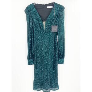 MAC DUGGAL Dress Size 4 Evening Gown Sequin NEW Midi Dark Green Emerald Structured Sleeve