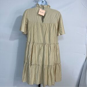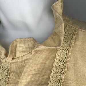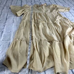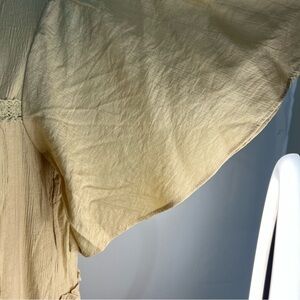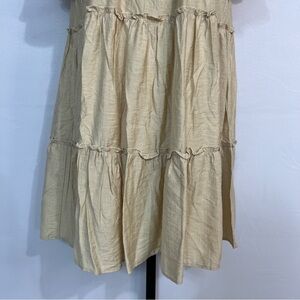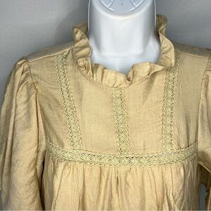Oh so cute ruffly with lace beige BoHo roomy dress. This has a beautiful linen look to it. This is a size small, photos also contain measurements, this comes from a smoke free home and will be mailed same business day. This is new with tags