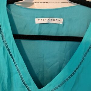 Trina Turk Turquoise Silk V-Neck Shift Dress