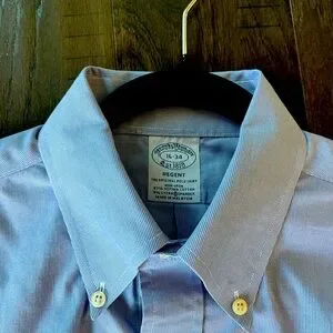 Regent fit Brooks Brothers button up. Size - 16 neck x 34 sleeve. Measures about 22.5 inches across the chest and about 30 inches from shoulder to bottom hem. Excellent shape and no flaws.