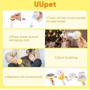 Efficient pet grooming brush with a yellow and blue handle. Ideal for cats and dogs.