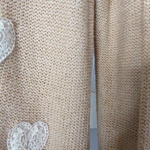 Lauren Conrad LC Pink Sparkle Knit Sweater Lace Heart Applique Large Long Sleeve