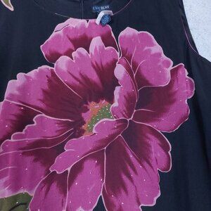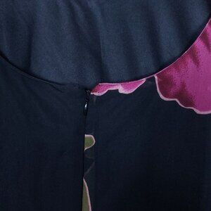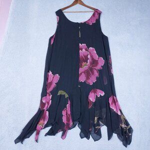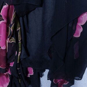 Eva Blue Dress Women 28 Black Floral Chiffon Beaded Asymmetrical Y2K Vintage NWT