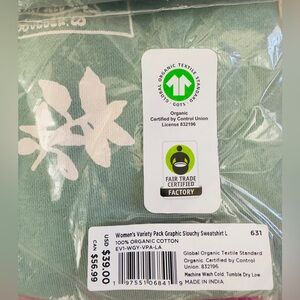 pact Organic Cotton Sage Green Graphic Herbs Crew Neck Slouchy Sweatshirt M & L
