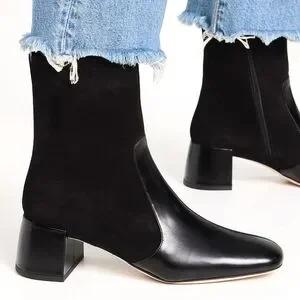 STAUDโs Andy ankle boots are crafted of leather and suede. Made in Portugal, this pair is designed with a round cap toe, side zip closure, and a chunky block heel.