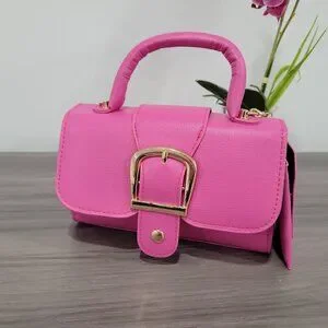 Brighten up your wardrobe with this trendy small pink handbag, designed with a chic retro buckle closure and a sleek, structured shape. Made from high-quality faux leather with a textured finish, this purse is both stylish and practical. It features a sturdy top handle for a classic look, along with an adjustable and detachable shoulder strap for versatile carrying options. The included detachable mini coin wallet adds extra convenience for storing small essentials like keys or cash. Perfect for casual outings, parties, or daily use, this bag is a must-have for fashion lovers who want a statement accessory with functionality.Measures