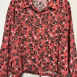 Lightweight cotton coral floral print button down blouse. Perfect for warm days with cropped pants or shorts.
