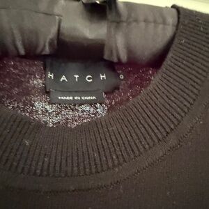 A Hatch classic made in a two way stretch knit you wont find anything more comfortable than this sweater dress for any and all occasions. This midi-length dress features a subtle ribbed crew neckline detail and matching rib detail around the arm opening.