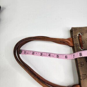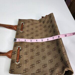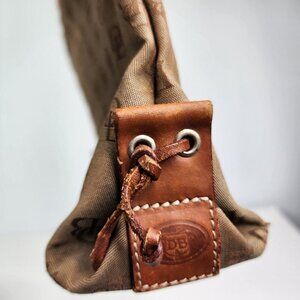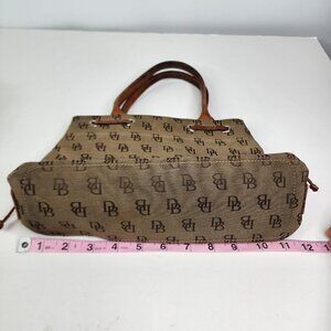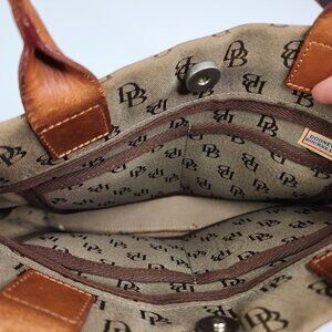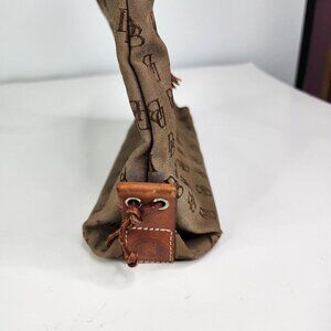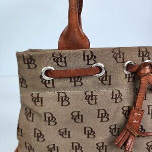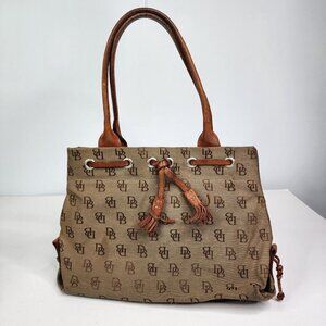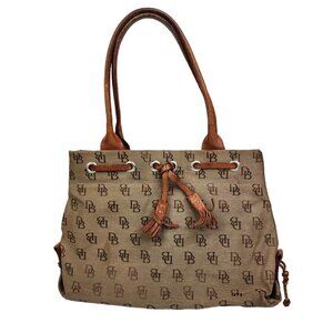 Dooney & Bourke Khaki Signature Monogram Canvas Tan Leather Tassel Tote
