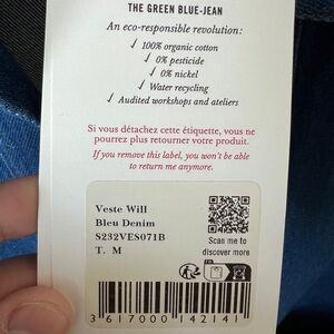 The IT jacket from Sezane. Brand new. Never worn. Perfect for casual outings, this jacket offers both comfort and fashion. The classic blue color makes it a versatile addition to any wardrobe.