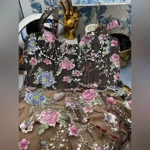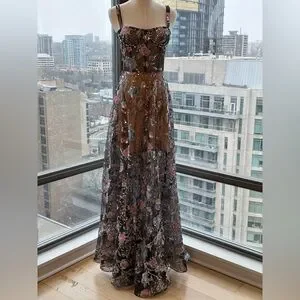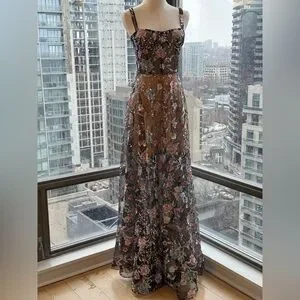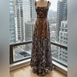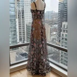 🆕 BRONX & BANCO 🧿 NWOT Midnight Embroidered Floral & Pearl Gown, Sz XS US 2