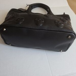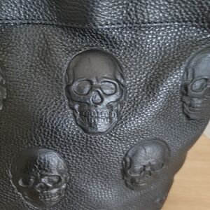 IOpelle İtalia stylish black tote bag with skull embossing. Perfect for a bold look.Made in Italy. Genuine leather .Brand new with tags. Comes with dusting bag. The bag with a shoulder strap. The bag is lightweight. Dimensions: W. 14.5 in.top, 11.5 in .bottom, H.10 in. D.5.25 in.The hardware color is black.