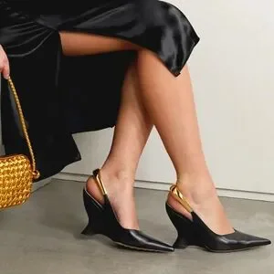 NWT$2,300 Bottega Veneta Punta Slingback Leather Wedge Pumps