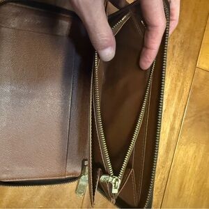 100% Authentic Louis Vuitton Zip Wallet in brown & tan monogram coated canvas. Perfect for everyday use.