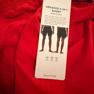 Bold red 2-in-1 shorts by Alo Yoga. Ideal for active wear. NWT