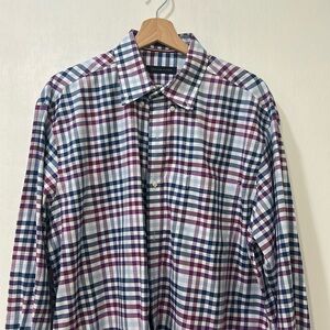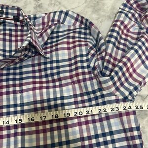 TOMMY HILFILGIER MENS BUTTON DOWN DRESS SHIRT PLAID PURPLE Sz 17 34/35