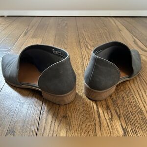 Wide Width size 10W vegan suede grey women’s Universal Thread shootie flat with asymmetrical cut out.