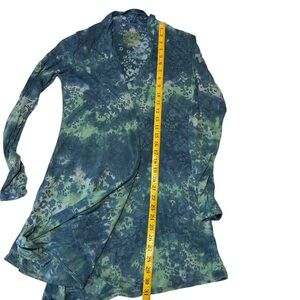 ECO YOGA lightweight tie-dye floral blues & greens burnout waterfall cardigan wrap size M
