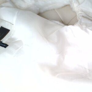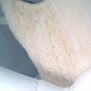 The fur does not shed. It lined in with satin fabric. The fur is soft and smooth. You will love it! There's a cable sweather design on each side. I only worn it 2 times. It is smoke and purfume free.