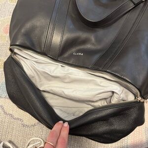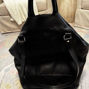 Elegant black leather tote bag, perfect for any occasion. Features a sleek design with ample space for essentials.