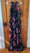 Elegant Express black maxi dress with vibrant floral print. Features flowing silhouette. This is a gorgeous dress, it has fun cut outs on the side for a little bit of sass.