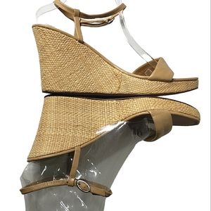 Spring Ann Taylor Wedge Strappy Floral Leather Straw Ankle Travel Summer Sandal 10
