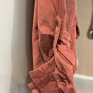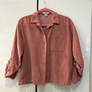 Use it as a top or open as a jacket for layering .. beautiful mauve color. Roll up sleeves or use all the way down. 100 %cotton! In excellent condition