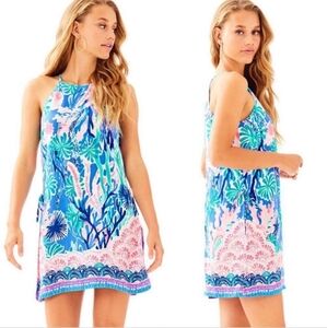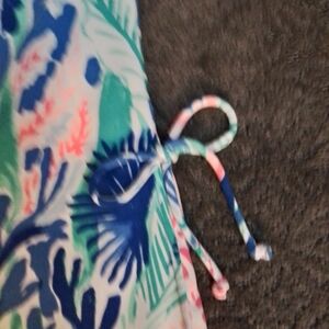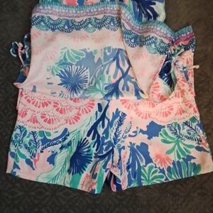 Your Pearl dress dreams just came true...introducing the Pearl Romper from Lilly Pulitzer in Jet Stream. The romper is an engineered print and has feminine bows zt the side slits. It has a halter neckline, a skirt with shorts underneath. It has a rear hidden zipper with hook and eye closure. Size 0; Excellent condition.