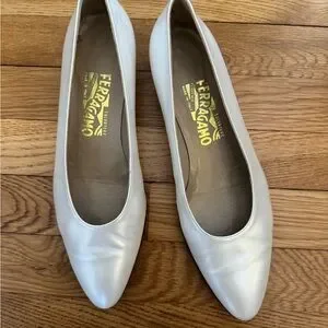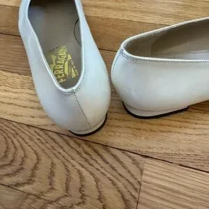 Elegant Ferragamo flats in cream leather. Perfect for any occasion.