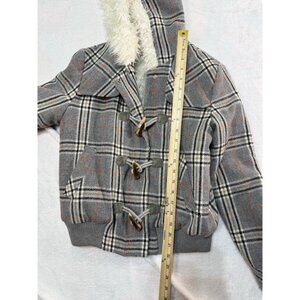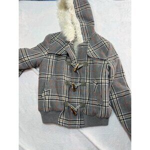 Vintage Juicy Couture Plaid brw Winter Coat Size Small Hooded Zip Toggle Pockets