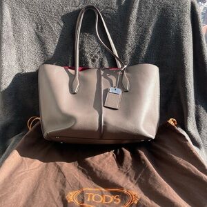 This Tod’s gray genuine leather tote bag is perfect for any occasion. Its sleek design and durable material make it a must-have accessory.
