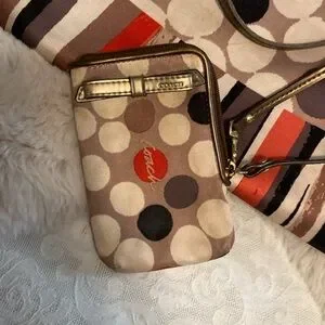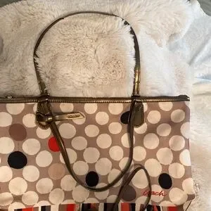 COACH Authentic Polka Dot Poppy Watercolor Tote Bag & Matching Small Wristlet