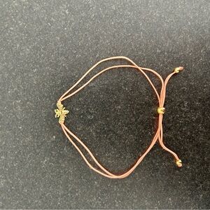 Stylish Gorjana bracelet with an evil eye charm. Features a vibrant blue cord and gold accents. Orange cord with bumblebee charm. Vibrant green cord with palm charm. All three bracelets sold together.