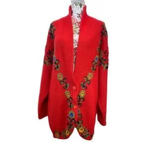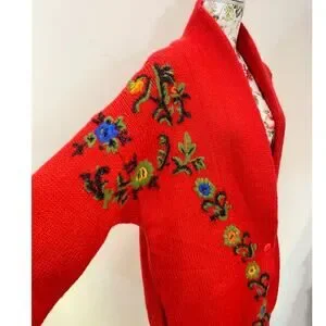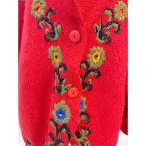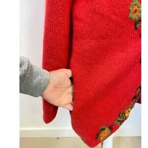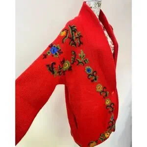 VTG Cervelle Red Bulky, Chunky, Shawl Collar Cardigan, Puff Sleeves, Wool Med