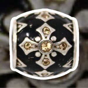 This stunning necklace features a black, silver and gold charm, perfect for adding a touch of elegance to any outfit. The intricate design and luxurious colors make it a must-have accessory.