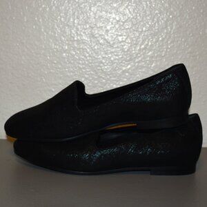 Shimmery black flat shoes by Vionic, size 7.5. Style: Willa II. Color: black, with a shimmery finish. Textile uppers. In excellent condition, showing almost no wear. Comes from a smoke free home.